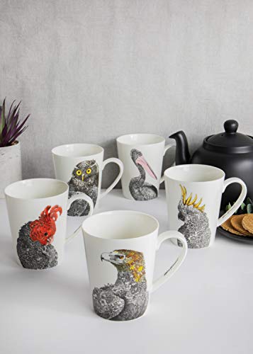 Maxwell & Williams Marini Ferlazzo Birds Tazza in Fine Porcellana Decorata con Civetta Ululante, Confezione Regalo, Colore Nero / Bianco, 450 ml