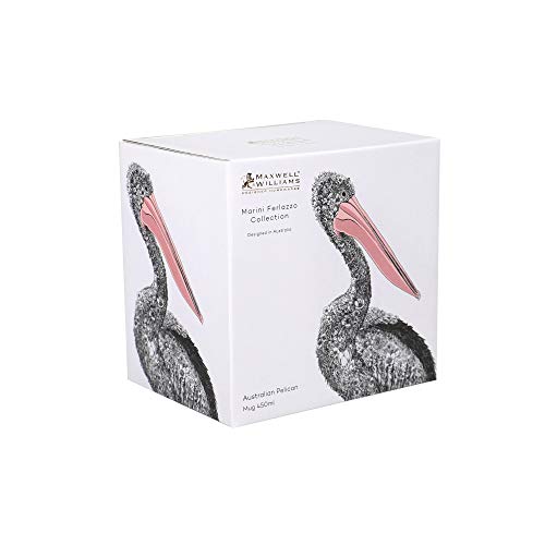 Maxwell & Williams Marini Ferlazzo Birds Tazza in Fine Porcellana Decorata con Pellicano Australiano, Confezione Regalo, Colore Nero / Bianco, 450 ml