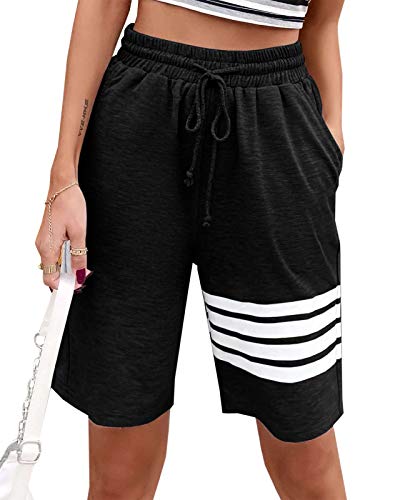 Maxwinee Pantaloni corti da jogging da donna, lunghezza al ginocchio, con coulisse, 3/4, estivi, Nero, XXL
