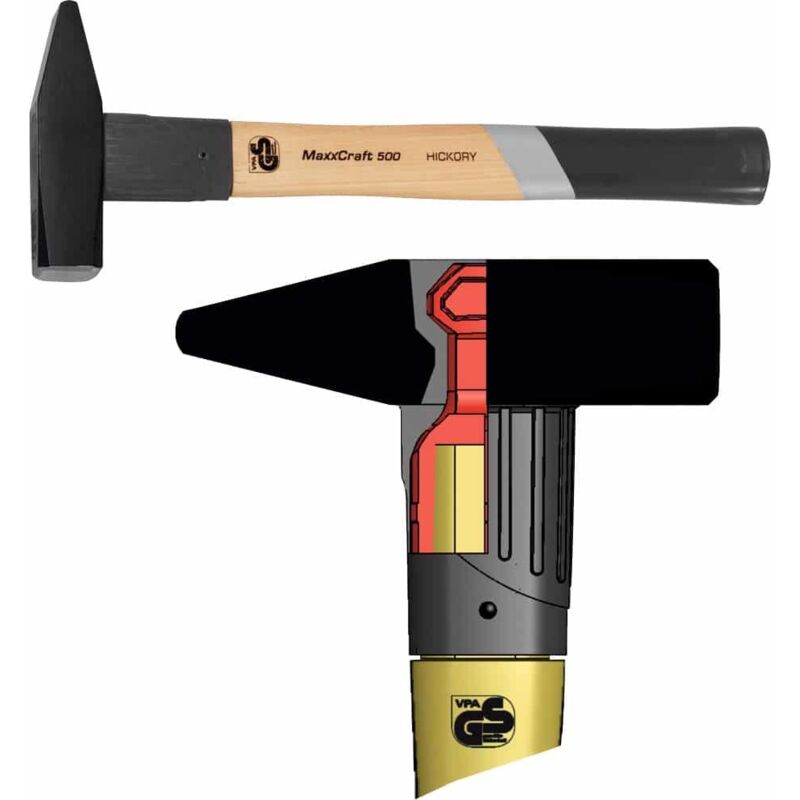 Dettagli: Il collegamento in gomma brevettato tra la testa e l'impugnatura riduce notevolmente i rimbalzi e la rumorosità e garantisce la trasmissione totale della forza d'urto al pezzo, lavoro senza affaticamento del polso grazie all'effetto antivibrante, rivestimento in gomma sulla parte superiore dell'impugnatura per attutire i 'colpi'. Campo di applicazione Per l'uso universale nell'industria e nell'artigianato, cioè ovunque siano stati utilizzati finora i martelli DIN tradizionali. Materiale Testa del martello acciaio speciale di alta qualità, forgiato a caldo Manico Hickory
