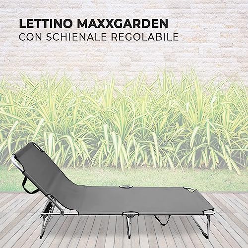 MaxxGarden Lettino Da Terrazza Pieghevole - Lettino da giardino, pieghevole - Uso per spiaggia, campeggio, balcone, ecc. 110kg di carico utile, lettino da esterno - Colore: Grigio