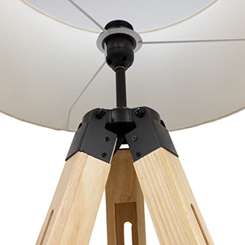 MaxxHome Lampada Da Terra Elly - Lampada Da Terra - Stile Scandinavo Moderno Con Treppiede In Legno - Lampada Da Terra Per Tutto L'interno - Lampada Da Lettura - Bianco - 65 x 65 x 99-143