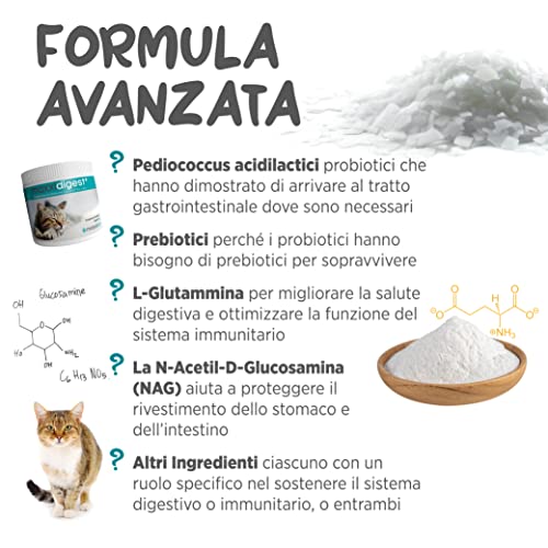 Non solo probiotici, ma una formula avanzata 2 in 1 per ottimizzare l'equilibrio digestivo del tuo gatto e il suo sistema immunitario. Perché intestino più sano significa animale più sano