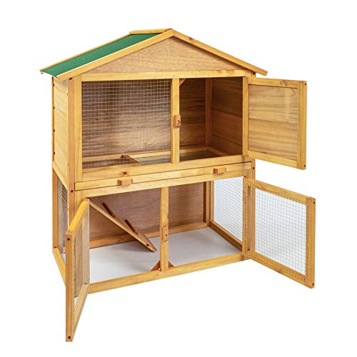MATERIALE - La conigliera è fatta di legno, il legno è di alta qualità. Il legno non è ancora trattato, lo consigliamo vivamente per la durata e la protezione del legno e del vostro prodotto! Il tetto assicura che la pioggia non possa entrare nella conigliera. Nota importante: si consiglia di posizionare il pollaio/coniglio sotto un riparo protetto. Questo lo farà durare più a lungo.