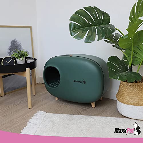 DESIGN: l'elegante design verde della lettiera per gatti MaxxPet si adatta armoniosamente a qualsiasi interno, aggiungendo un tocco attraente alla tua casa fornendo allo stesso tempo spazio pratico per il tuo animale domestico.