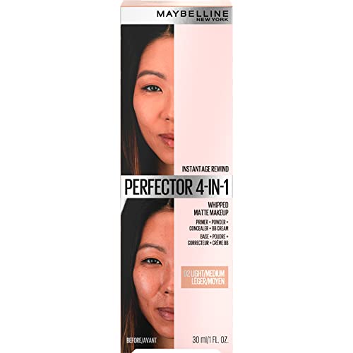 Maybelline New York Instant Age Rewind Perfector 4in1 Fondotinta Perfezionante Matte 02 Light/Medium - Flacone da 30ml