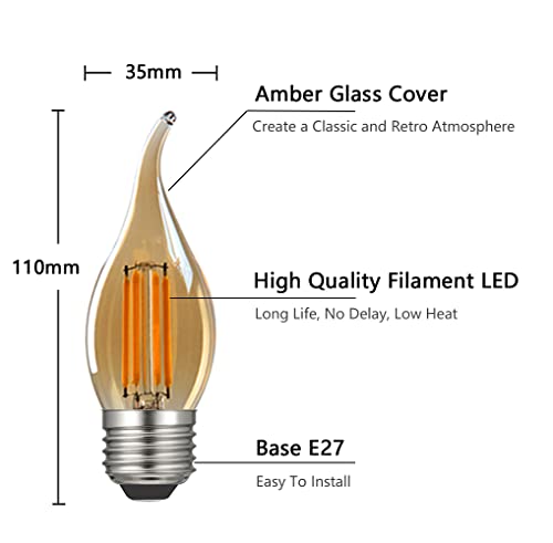 MAYCOLOR Lampadine LED Candela E27 4W Equivalenti 40W, 400Lm, Bianca Calda 2700k, Lampadina Candela Vintage per Lampadari, Illuminazione Retrò e Illuminazione Decorativa, Vetro Ambra, 12 Pezzi