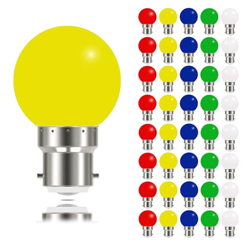 MAYCOLOR Lampadine Colorate B22 3W Equivalenti 30W, 240 Lumen, AC 220-240V, Lucine da Esterno Giardino per Natale Matrimonio Festa Giardino Patio, 40 Pezzi