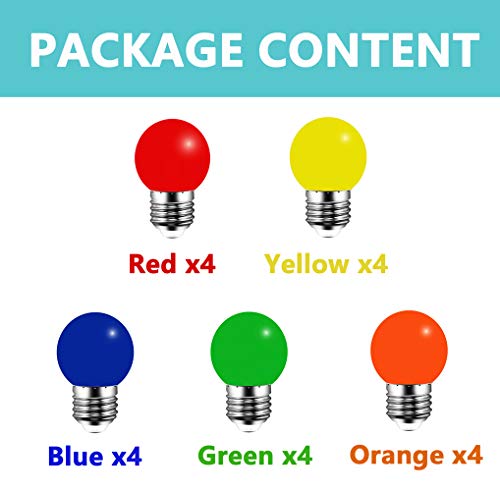 MAYCOLOR Lampadine Colorate E27 3W Equivalenti 30W, 240 Lumen, AC 220-240V, Lucine da Esterno Giardino per Natale Matrimonio Festa Giardino Patio, 20 Pezzi