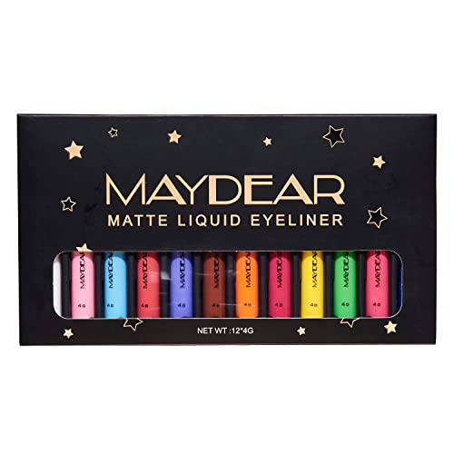 Maydear 12 Farben Matte Colorful Liquid Eyeliner Set,Wasserfester und langanhaltender flüssiger Eyeliner,Ultradünn, glatt ohne Spliss