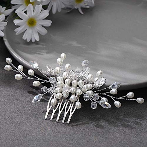 Mayelia Accessorio per capelli con perle e cristallo, argento, per spose e matrimoni, accessori per capelli per donne e ragazze