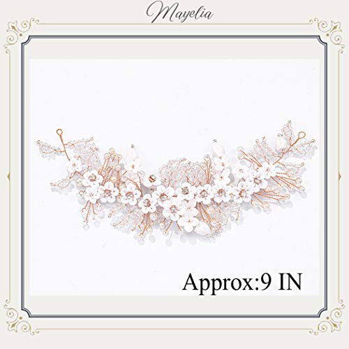 Mayelia - Cerchietto per capelli da sposa con perle, in oro rosa, con cristalli, per donne e ragazze