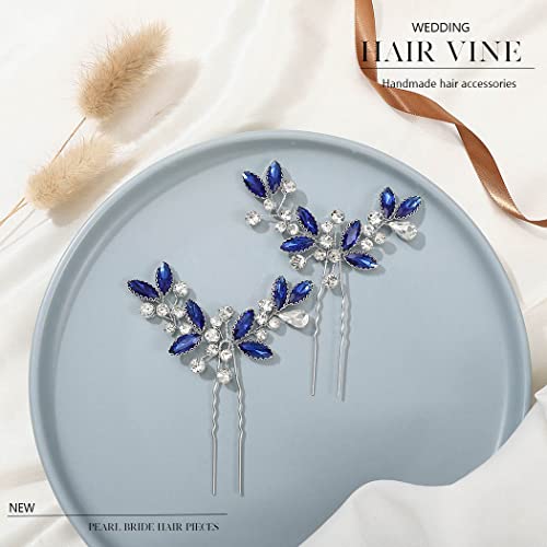 Mayelia Fermagli per capelli da sposa in cristallo, per donne e ragazze (2 pezzi) (blu)