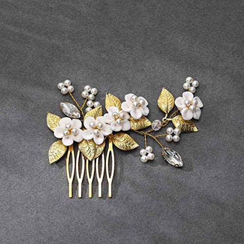 Mayelia Perla Pettine per Capelli da Sposa Oro Fiore Accessori per Capelli da Sposa Pezzo di capelli fogliari per Donne e Ragazze