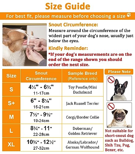 NOTICE & BUY WITH CONFIDENCE: It is important to do necessary training for your dog while putting a muzzle on for the first time. We provide pictures and videos of wearing muzzles for reference. Please measure twice before purchase and feel free to contact us if you have any questions. If you don't love your new soft muzzle, send it back for a full refund, no questions asked! Just buy with confidence!