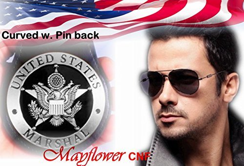 Mayflower Cnf - fatto a mano, argento antico u.s Marshal badge su un grezzo Holder W. catena lunga 71,1 cm e clip da cintura, metallo (spessore) rare, Nice Collection - Wonderful Prop - Ottimo regalo
