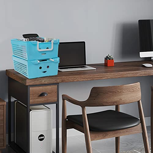 Mayish Cestini Plastica 2 Manici, Cestini Portaoggetti Piccoli, Verde/Blu/Rosa, 6 Pezzi