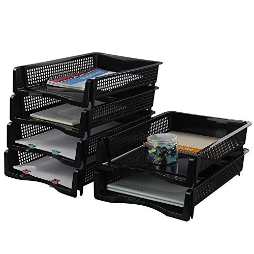 Mayish Vaschetta Vassoio Portadocumenti Portacorrispondenza A4 in Plastica Impilabile, Colore Nero, Confezione da 6