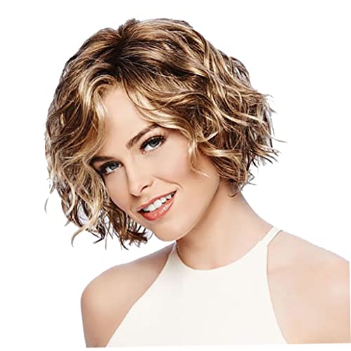 MaylFre Parrucca corta marrone per le donne Bob riccio naturale parrucca ondulata parrucche sintetiche parrucche per capelli resistenti al calore parrucca piena parrucca cosplay