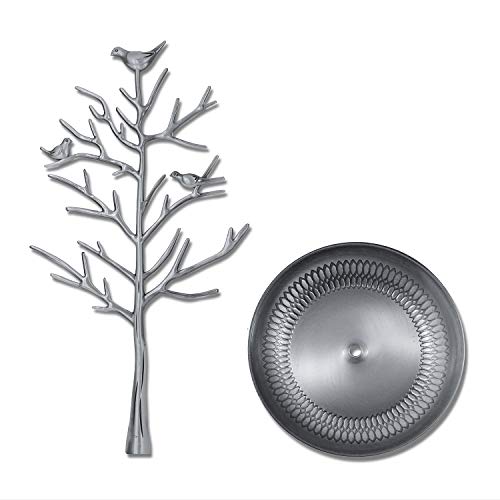 Mayner - Portagioie a forma di albero con uccelli, stile vintage, porta orecchini e collane, colore: argento