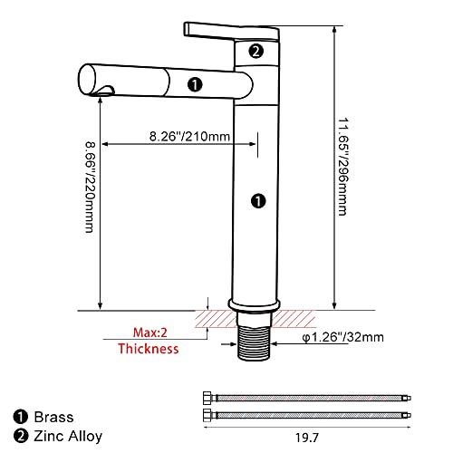 【Alta qualità】 Questo rubinetto alto è fatto di ottone A di alta qualità per una costruzione robusta e durevole. Il tubo flessibile incluso è fatto di materiale PEX per uso alimentare ed è inodore per la salute. La cartuccia di ceramica integrata può resistere a 500.000 cicli di utilizzo senza gocciolare.