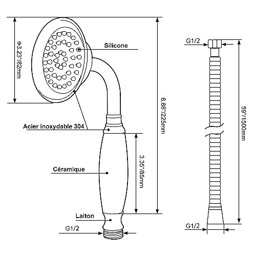Maynosi Soffione doccia classica, doccetta a mano, stile telefono, stile tradizionale, con manico in ceramica, doccetta vittoriana con tubo da 1,5 m, cromato (ceramica a fantasia)