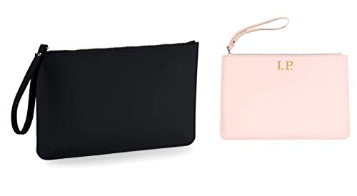 MAYRA Pochette Beauty Case Borsetta Multiuso Ecopelle Semil pelle Personalizzabile con Ricamo del Nome o Iniziali Personalizzata (Nero)