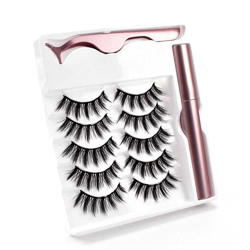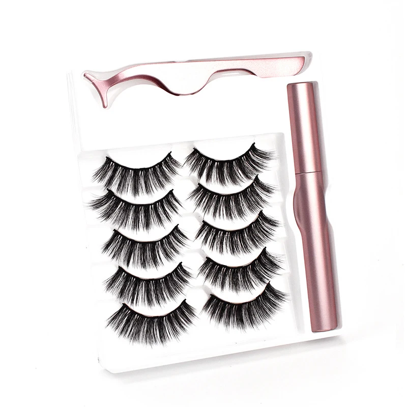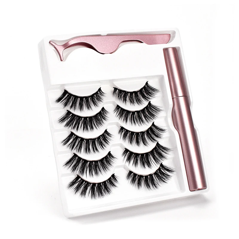 MAYSHIKOU 3D 5Pairs Magnetic Eyelashes With Eyeliner Applicator Clip Mix Natural/Thick Style Extension False lashes Set