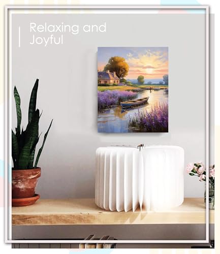 Maysurban Dipingere con i Numeri Adulti, Kit di Pittura a Olio su Tela Fai-da-Te per Bambini,Paint by Numbers Adulti e Bambini, Senza Cornice 40x50cm,Barca sulla riva del fiume alla lavanda