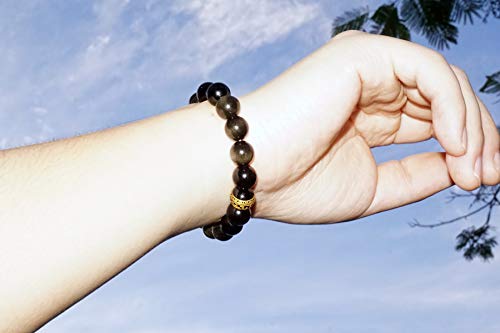 Mayting Bracciale in Ossidiana Color oro 10mm, Regalo Braccialetto Elastico Buddista Lama Tibetano per Ragazzi e Ragazze