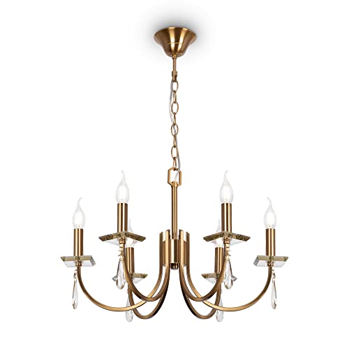 MAYTONI DECORATIVE LIGHTING Forte Lampadario Moderno, 6 Luci, Metallo color ottone, Design Neoclassico a Candela, Сristalli, Altezza regolabile, per 6 Lampadine E14 40W non incl.