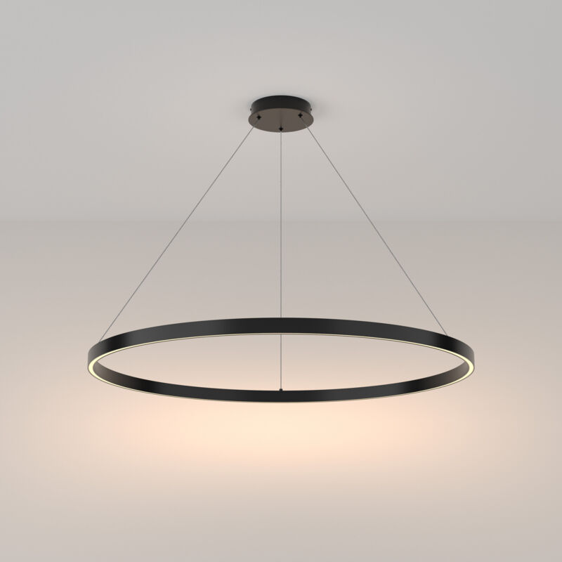 Collezione Rim IL CERCHIO LUMINOSO CHE FLUTTUA IN CASA Lampadario a SospensioneModernoRim1luci61W armatura inAlluminioNeroNero3000KIP20 D.100 x H.10-120 cm. Corpo in metallo. Forma circolare alla moda. La posizione degli anelli dei modelli a sospensione è regolabile. Applique con luce riflessa. Sorgente luminosa LED.