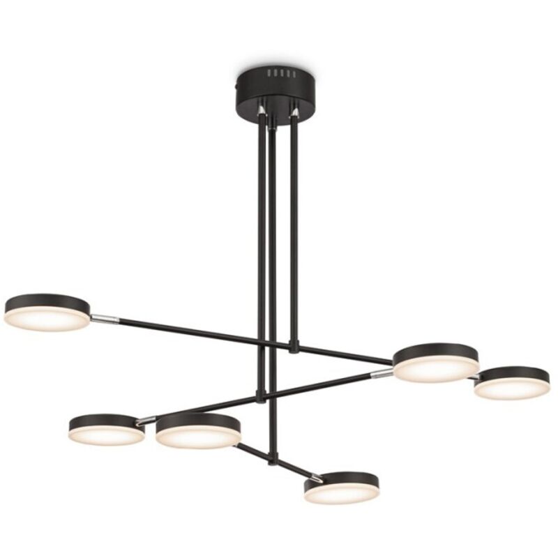 Collezione Fad LA LUCE CHE TI SEGUE Lampadario a Sospensione Moderno Fad 6 luci Led 40W armatura in Metallo Nero Acrilico Nero 3000 K IP20 L.55 x W.89 x H,61,6 cm. Armatura e plafoniere in metallo. Colori - nero opaco e nero. Le plafoniere ruotano di 340° in orizzontale e di 90° in verticale. Diffusore in acrilico opaco. Modulo LED integrato. Interruttore dell'applique e della lampada da tavolo con dimmer.