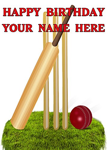 Mazza da cricket palla e ceppi CPTMI67 Happy Birthday A5 auguri personalizzato Posted by US Gifts For All 2016 from Derbyshire UK