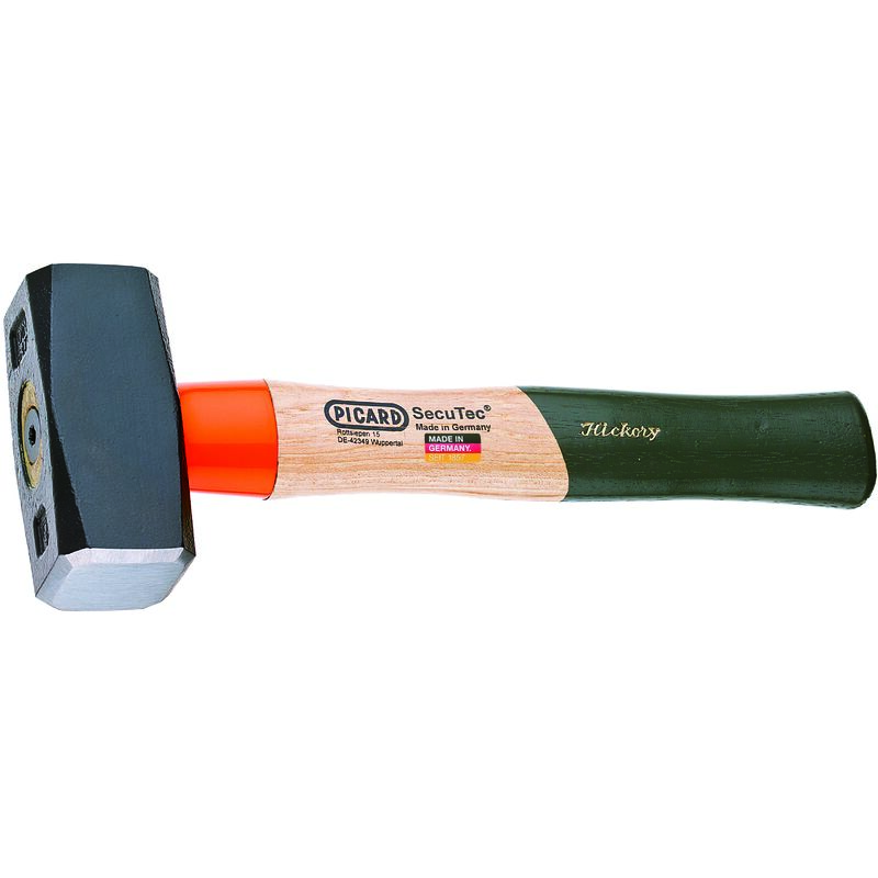 Pentola quadrata con testa nera epossidica resistente alla corrosione in acciaio legato speciale temprato e rinvenuto, superfici di battuta lucidate, collegamento sicuro tra testa e manico tramite cuneo a vite brevettato SecuTec, custodia protettiva