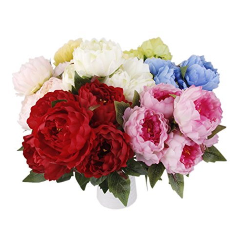 Mazzo Fiori Artificiali Bouquet Peonia In Seta Decorazioni Sposa Matrimonio Casa, Verde Chiaro