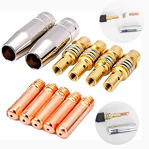 MB15AK MIG 11 PZ, 2 Ugello, 5 Punta Guidafilo M6 0,8mm, 4 Ugelli Puntali di Contatto Supporti, MIG Accessori Set di Materiali di Consumo Saldatori Strumenti di Saldatura Adatti per Torcia 15AK