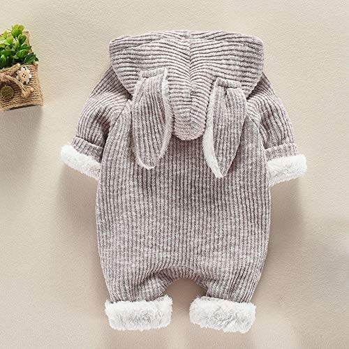 Mbby Pagliaccetto Neonato in Cotone, 0-24 Mesi Pagliaccetti con Cappuccio e Cerniera Coniglio Pigiama Maniche Lunghe Caldo Addensare Tutina Fumetto Outfits per Ragazze e Ragazzi (Grigio, 18-24 Mesi)