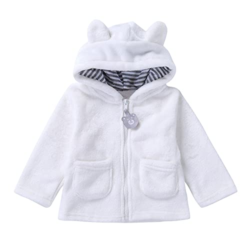 MBbys Cappotto in Peluche Neonato Invernale, 0-24 Mesi Capispalla in Cotone per Bambino e Bambina con Cappuccio e Cerniera Caldo Leggero Addensare Antivento Giacche Giubbotti (3-6 Mesi, K-Bianca)