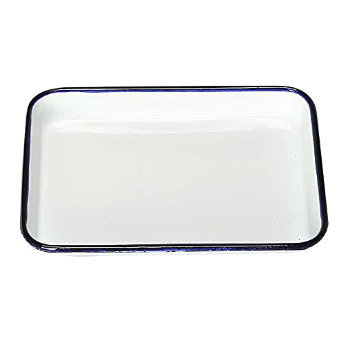MBLUE 1 vassoio vintage realizzato a mano, smaltato bianco, per la casa, per il forno, per la cottura e il forno (18 cm x 24 cm x 3 cm)