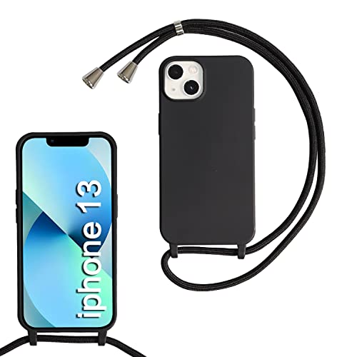 MBSLFY Cover Cordino per iPhone 13 Custodia con tracolla,Regolabile Cellulare Girocollo Case con Collana TPU Corda Silicone,Nero