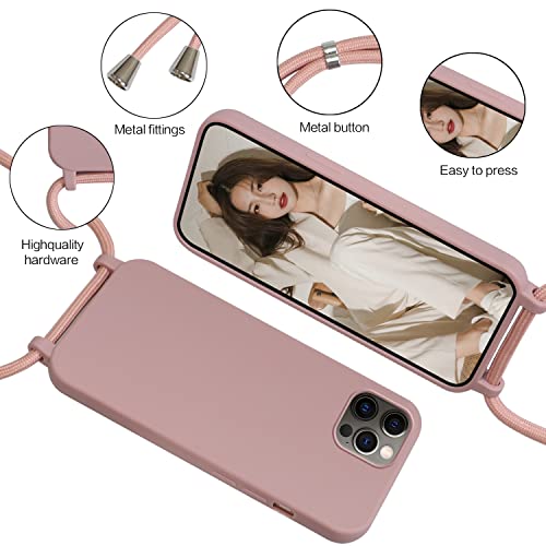 MBSLFY Cover Cordino per iPhone 13 Pro Custodia con tracolla,Regolabile Cellulare Girocollo Case con Collana TPU Corda Silicone,Rosa chiaro