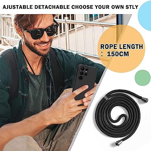 MBSLFY Cover Cordino per Samsung Galaxy S22 Ultra Custodia con tracolla,Regolabile Cellulare Girocollo Case con Collana TPU Corda Silicone,Nero