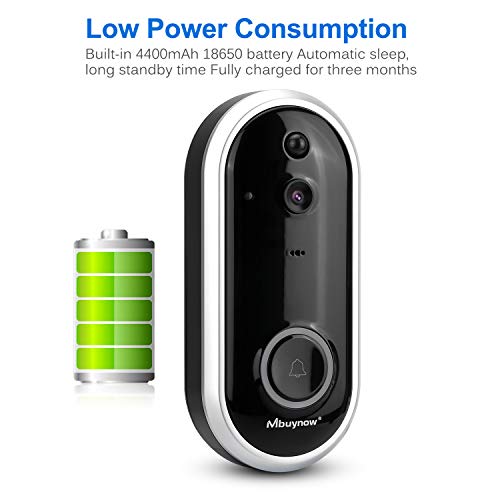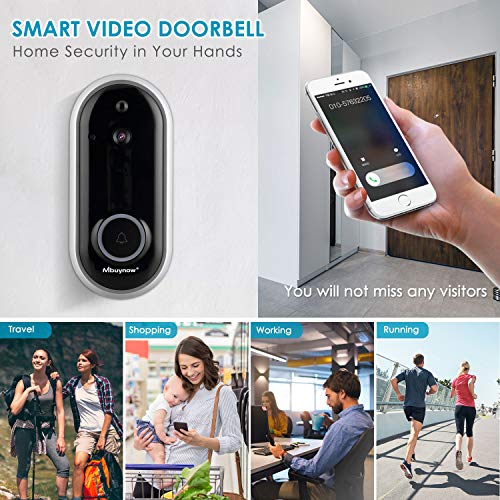 Mbuynow Video Campanello Wireless, Video Campanello Senza Fili 1080P HD Audio Bidirezionale, Peephole Door Camera 170 Gradi grandangolare, Sensore di Movimento Adatto a Famiglie, Hotel - Silver