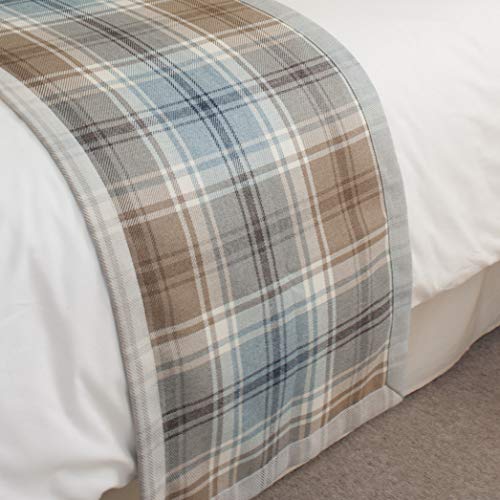 McAlister Textiles Copriletti e Runner Tartan Scozzese Angus | Coperte Letto Decorative Matrimoniali e Singole Effetto Lana | Copridivano Home Décor | Azzurro Chiaro | Runner Letto 50cm x 240cm