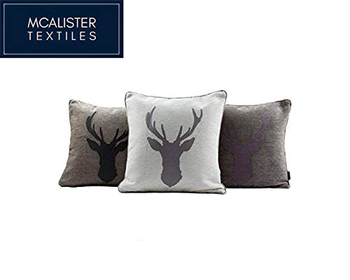 McAlister Textiles Federe Cervo e Tartan Scozzese |Copricuscini Decorativi per Divano, Letto, Sedie, Motivo a Strisce| Color Mora 43x43cm | Set di 4-2X Tartan e 2 x Cervo