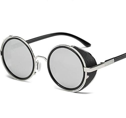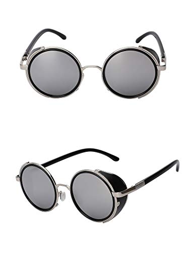 MCalle Occhiali da Sole Steampunk Rotondi Polarizzati in Metallo - Occhiali UV400 Stile Steampunk per Uomo e Donna (argento)