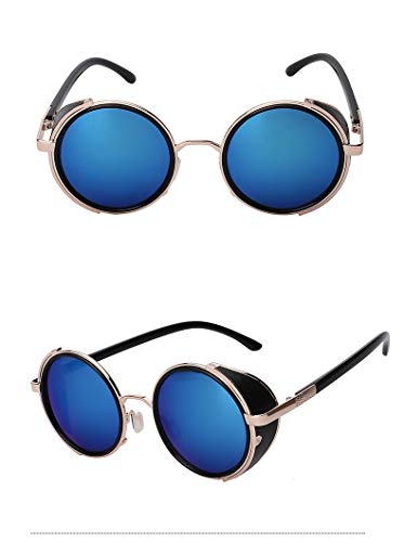 MCalle Occhiali da Sole Steampunk Rotondi Polarizzati in Metallo - Occhiali UV400 Stile Steampunk per Uomo e Donna (blu/oro)
