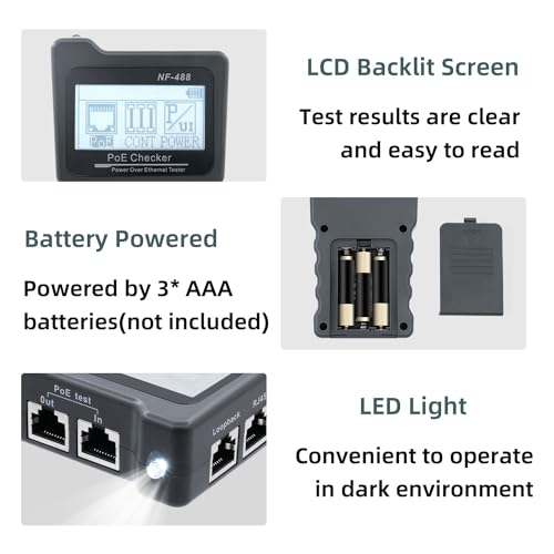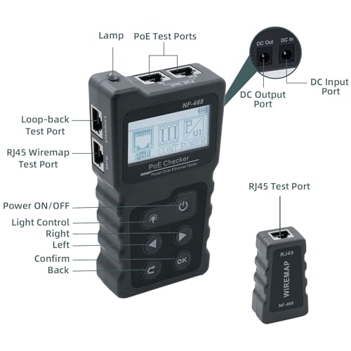 Soluzione di test di rete all-in-one: Questo tester per cavi RJ45 è stato meticolosamente progettato per semplificare il processo di collaudo dei cavi. Vanta una serie di test, tra cui POE, CONT, Power, Loop-back e una pratica luce LED. Sia che si lavori con cavi CAT5e, CAT6 o CAT6a, questo tester è un compagno versatile.