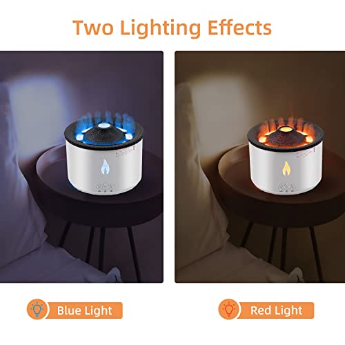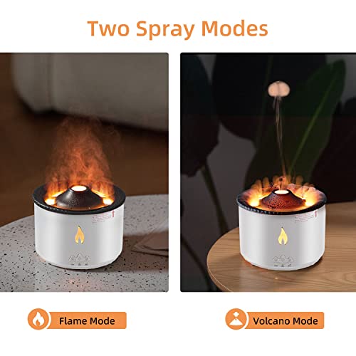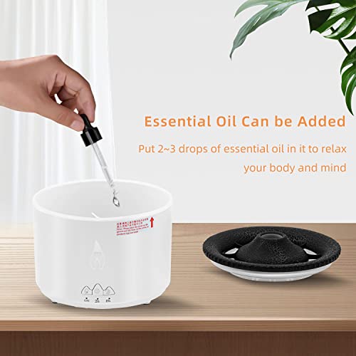 Mcbazel Vulcano Diffusore di Aroma di Fiamma, 360 ML Diffusore di Aromi Umidificatore Fiamma Vulcano Funzione Temporizzazione Elettrica/Cambio Luce/Telecomando con Spina EU- Bianco/Crepa